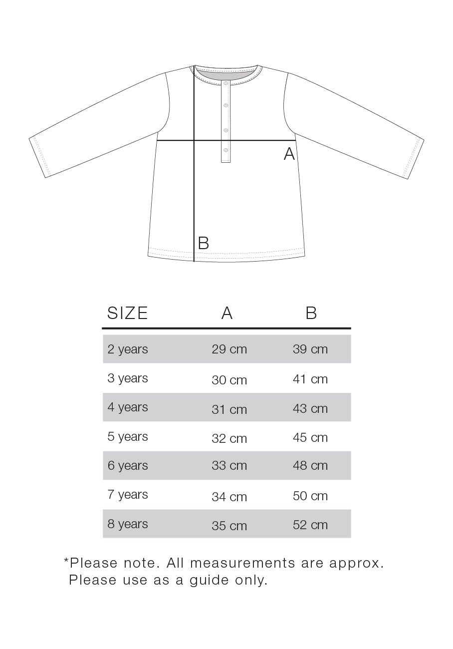 Our size guide is only approximate measurements, taken on a flat surface and are of the front of the garment only. Please use this as a guide.