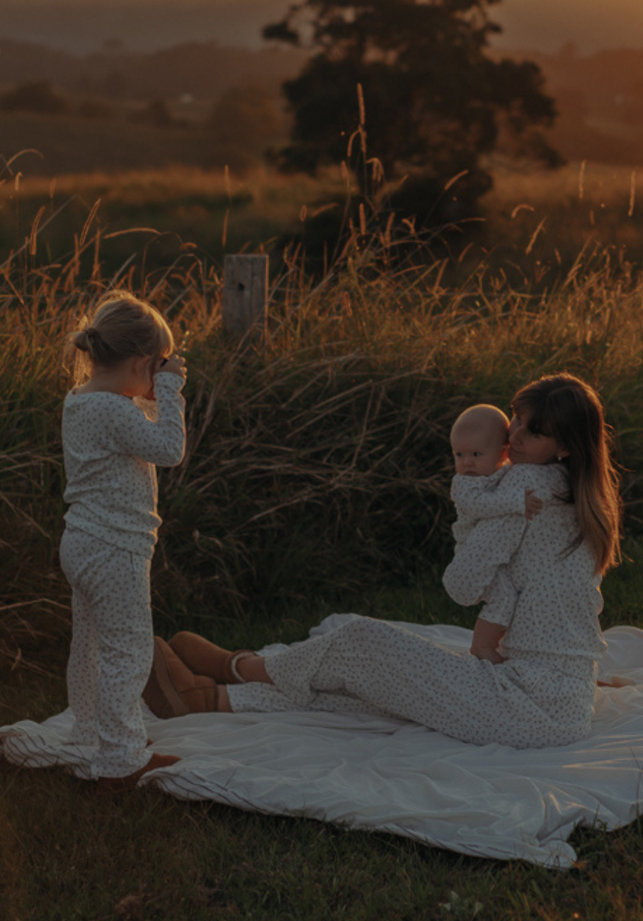 We equally love prints and pointelle, so we thought— why not combine them? Our Cornflower Posy Pointelle features sweet pointelle details and a brown and blue floral you'll adore.