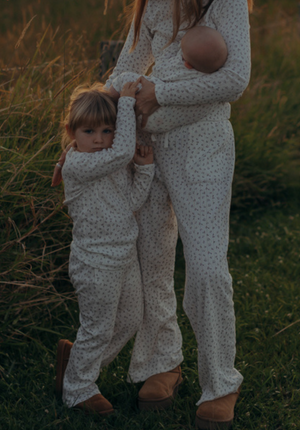 A pair of comfy pants for your little one? Yes please. Based off our Wide Leg Kint Pants, these are a super cute jersey style that are so comfortable on and look oh so cute. Pair with our matching pointelle top for the cutest look!