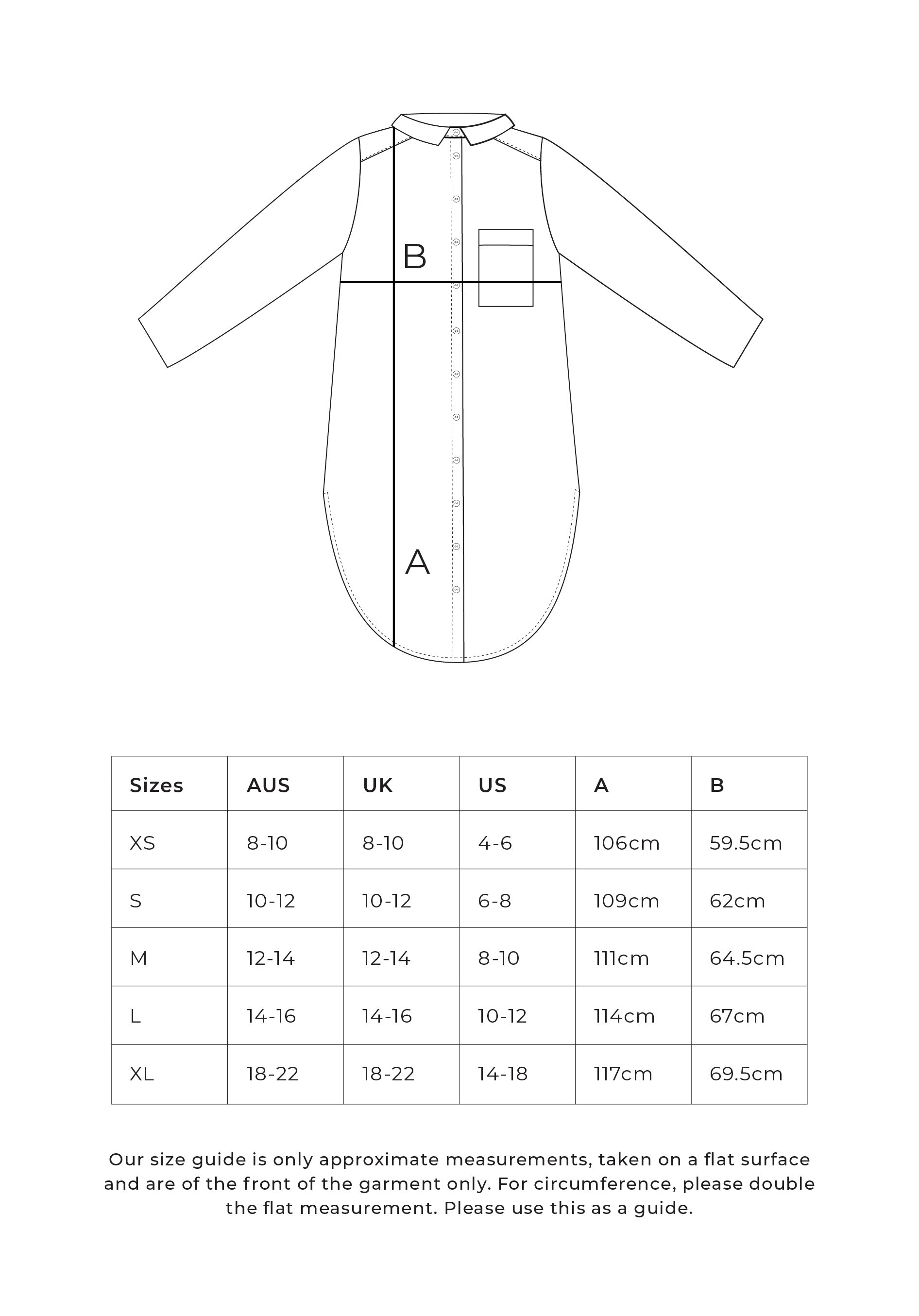 Our August Shirt Dress is a new season take on our much loved Bowie Shirts. With a long line length, and fully functional front placket, this piece makes a great beach coverup, lounge dress or light jacket.