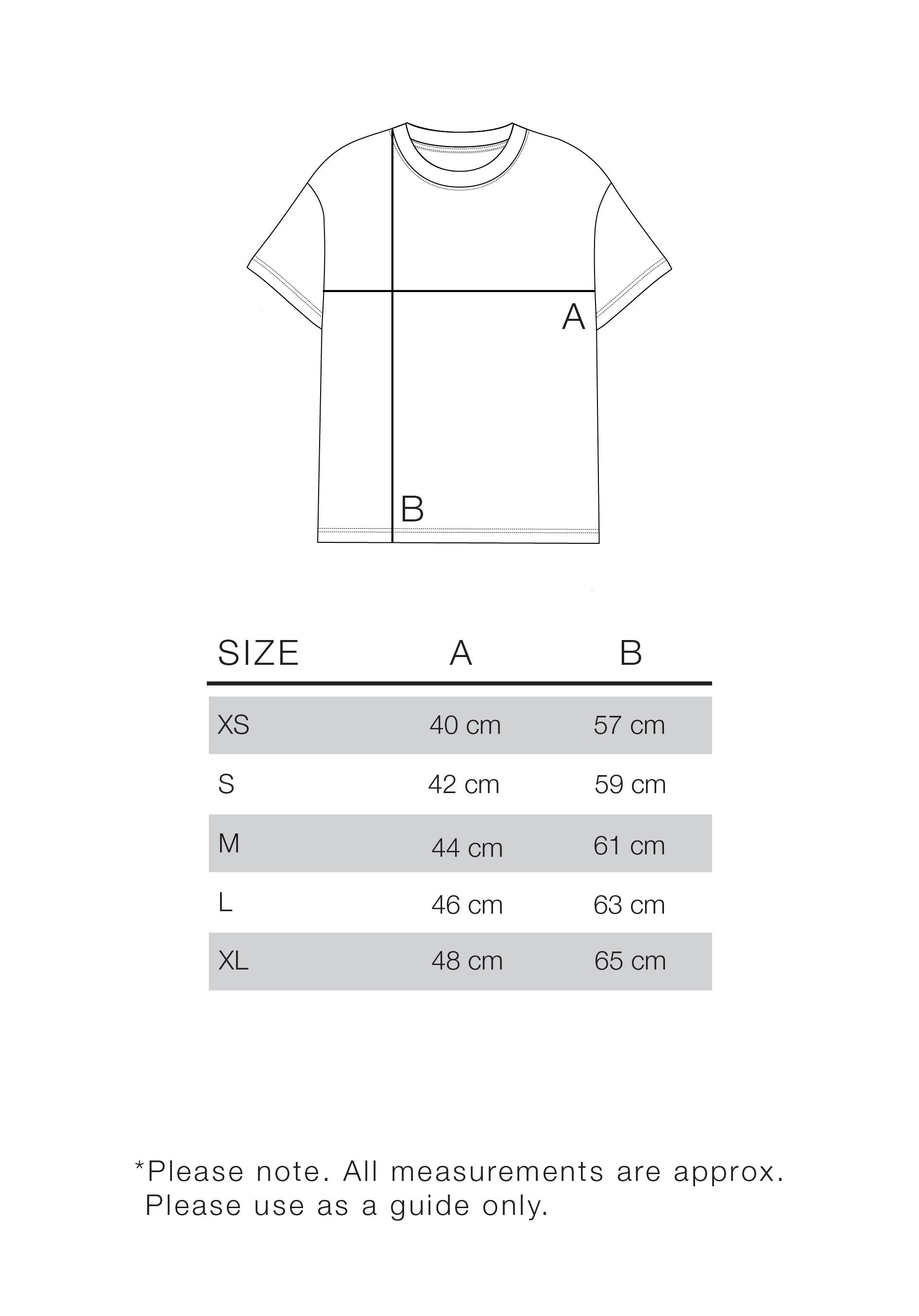 Please note: Our size guide is only approximate measurements. Please use this as a guide only.