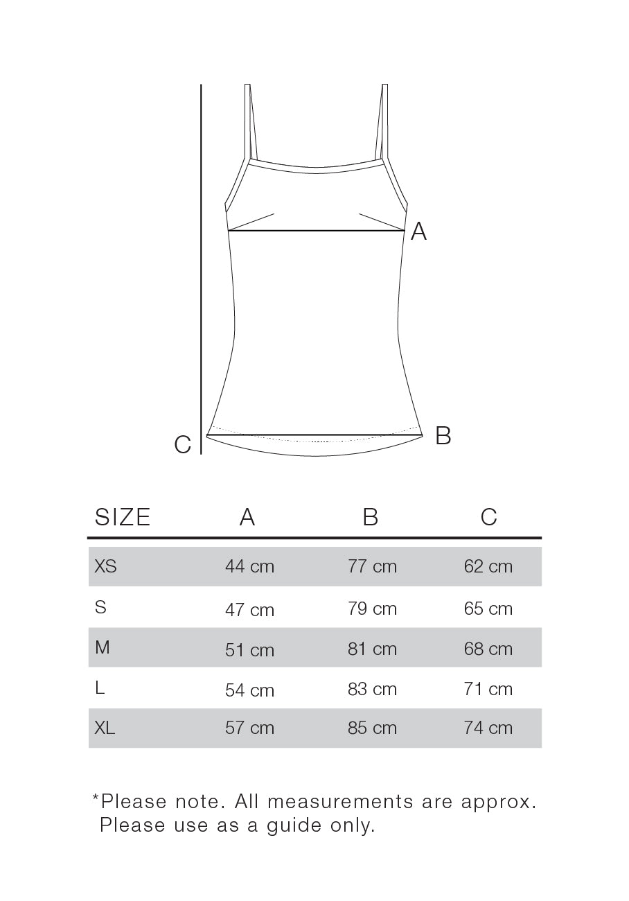 Please refer to the image at the end of the product image carousel for further details on measurements. Our size guide is only approximate measurements, taken on a flat surface and are of the front of the garment only. Please use this as a guide.