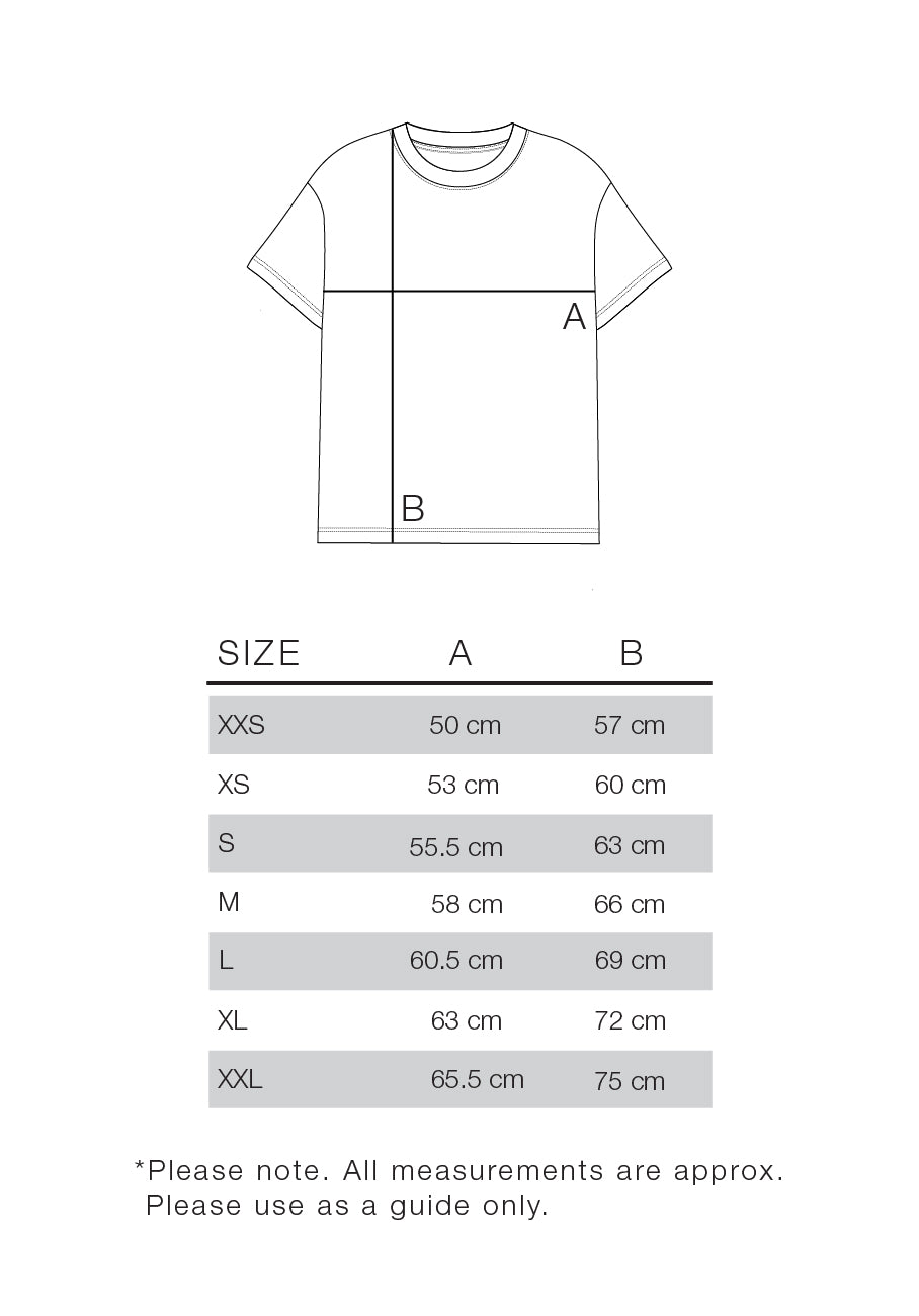 Our size guide is only approximate measurements, taken on a flat surface and are of the front of the garment only. Please use this as a guide.