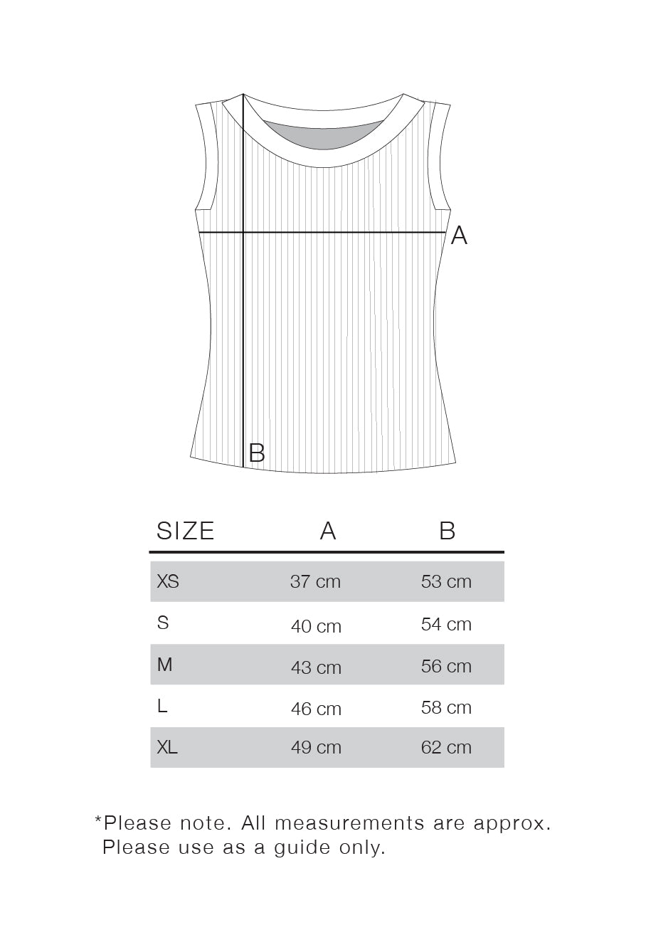 Please refer to the image at the end of the product image carousel for further details on measurements. Our size guide is only approximate measurements, taken on a flat surface and are of the front of the garment only. Please use this as a guide.