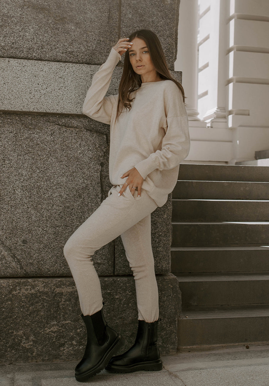 Miann & Co Women - Opal Jersey Rib Wide Leg Pants - Cloud