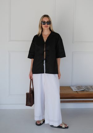 A sustainable wardrobe staple, our new Zola Tie Shirt is the perfect pairing for Summer. Wear as a coverup over your bathers, or for a night out with friends to show a little skin.